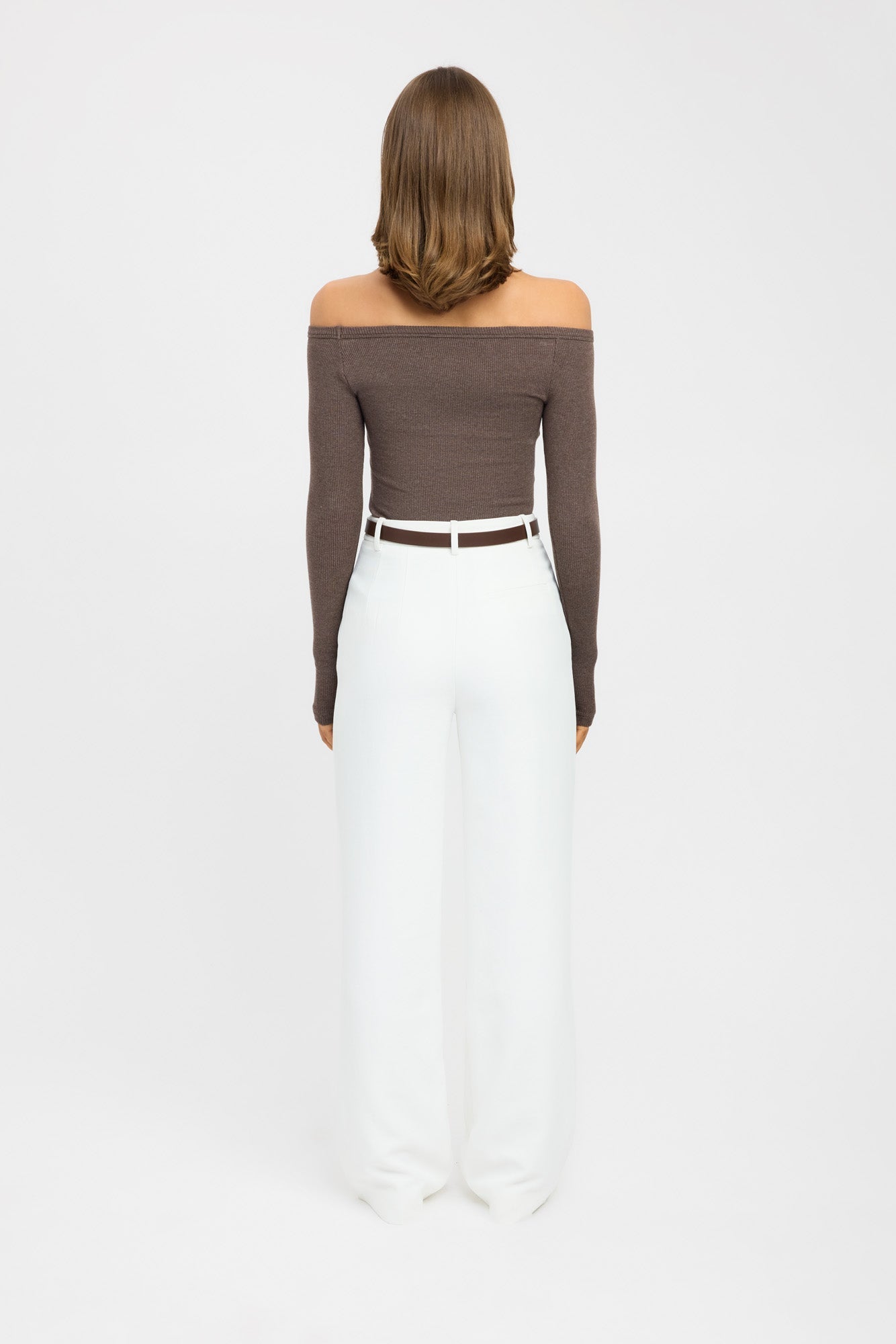 For a modern take on suiting, opt for the Ariel Straight Leg Pant in a fresh white colourway. Made from our suiting Ariel fabrication, it is tailored to a high rise silhouette with straight legs. The classic design is detailed with belt loops and a concealed clasp.