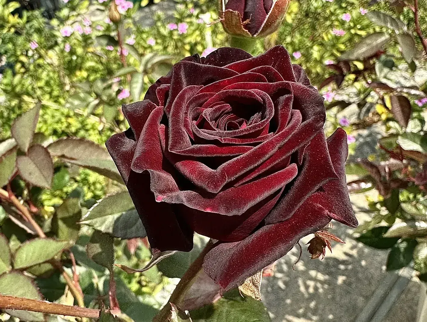 "Black Buck" is a Danish cut rose. It is a mixed tea rose. The flower color is very deep dark red and looks a little black. Known as the black widow among red roses, its thick velvet feel makes it feel like a flower in a movie, with a retro atmosphere.