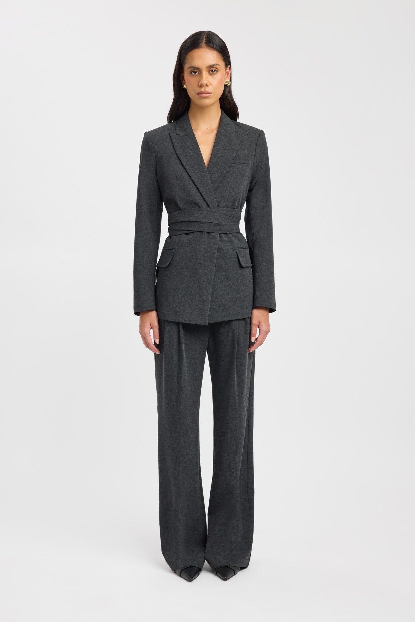 Elevate your wardrobe with our Dallas Pleated Pant. Crafted from our structured Dallas fabrication in a versatile dark grey, these wide-leg trousers offer a flattering mid-rise silhouette. The refined pleating detail creates an elegant drape that transitions effortlessly from professional settings to evening occasions.