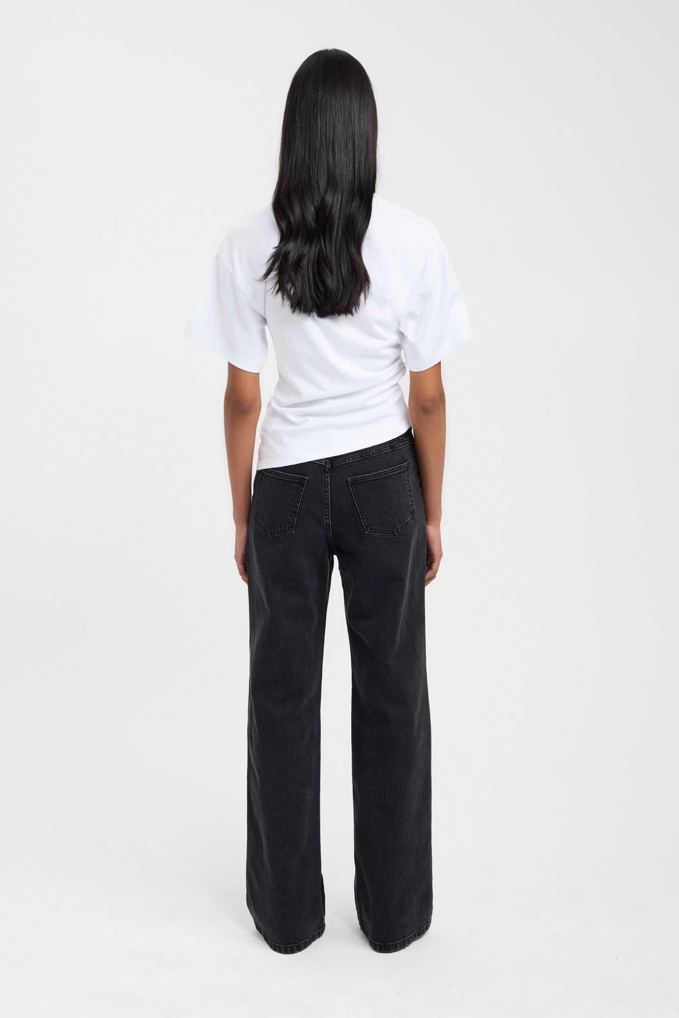 Nova Tee in White is a contemporary take on a classic silhouette. Featuring a high neckline and wide short sleeves, this tee is designed with a cinched waistline to accentuate the oversized sleeve shape, creating a flattering and structured fit.