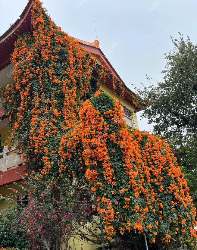 🧡 Pyrostegia venusta, also known as flame vine, is known for its bright orange flower clusters and fast climbing growth characteristics. It is an ideal choice for decorating walls, fences and arches. Let your garden glow with charming colors and natural beauty by planting our Pyrostegia seeds. 🌿