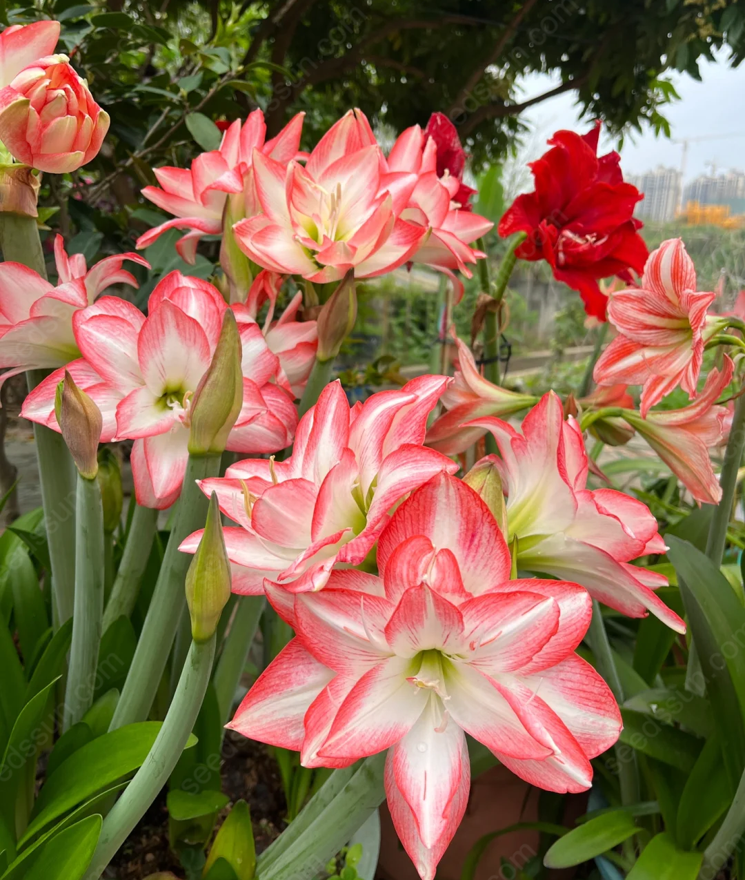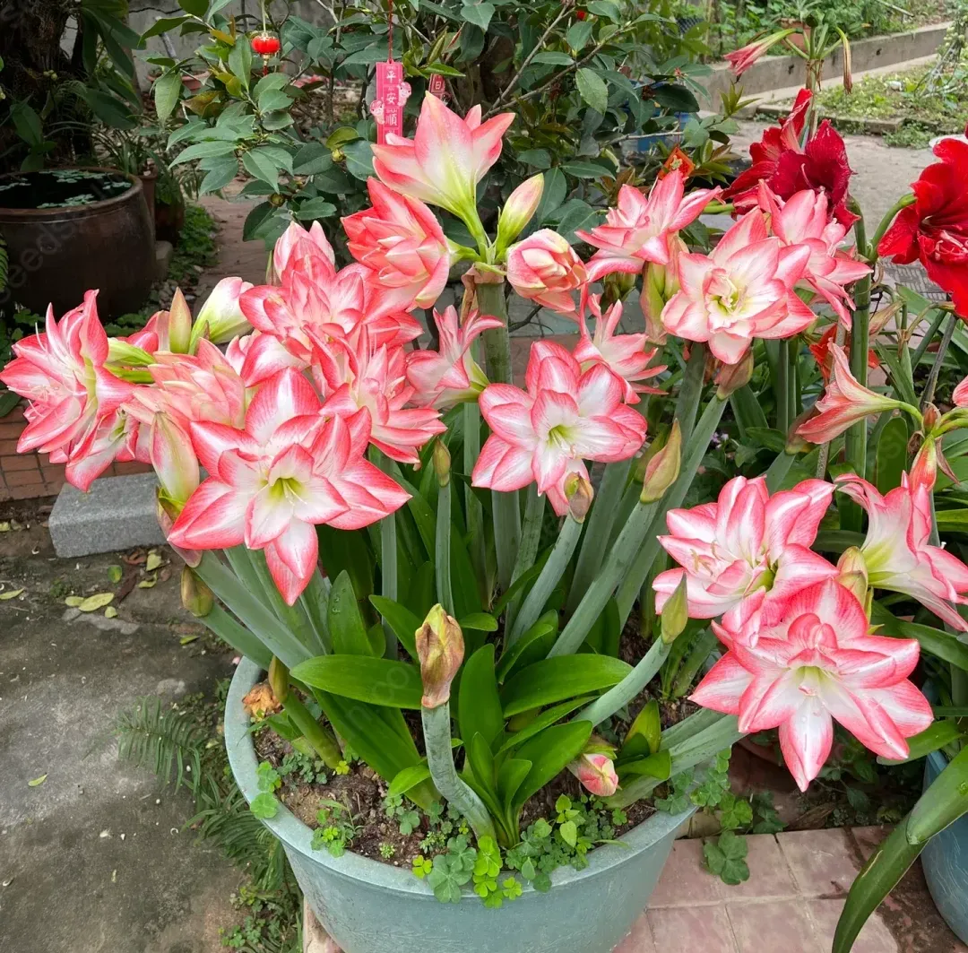 Amaryllis 'Peacock', with its unique double-layer petals, looks like a peacock spreading its wings.