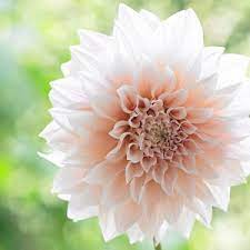 ‘Break Out’ is a 8-10” creamy white decorative dahlia with blush and pink as you move towards the buttery yellow centers.