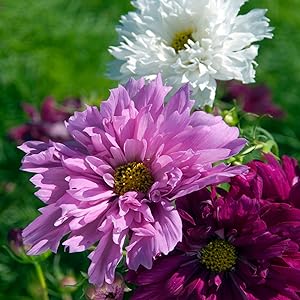 Cosmos (Cosmos Bipinnatus Double Click Mix)This gorgeous cosmos mix features tall plants with large, fully-double and semidouble blooms. Featuring shades of carmine, pink, and white, these blooms will make for excellent cut flowers and an even better garden addition. These sturdy plants will reach up to 4 feet tall and provide a vibrant display to all. The blooms are also effective at attracting pollinators (especially butterflies) to the garden. For the best flower production, plant in soils of average fertility with moderate water. Cosmos plants tolerate heat, drought, and poor soils. Remove spent blooms to promote additional flowers. Cosmos will usually self-sow if some spent blossoms are kept on plants. Cut flowers typically last 5 to 9 days if blooms are harvested when the petals are just beginning to unfold: the flowers will still fully open in the vase. |   |