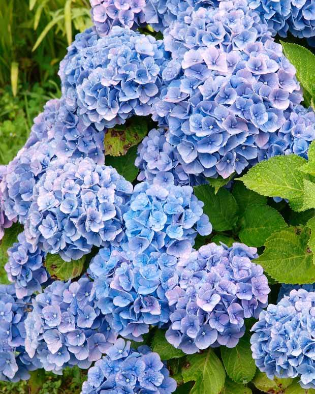L'hortensia à grandes fleurs bleues (Hydrangea macrophylla) forme un buisson compact et vous offre ses gros pompons colorés recouvrant un abondant feuillage vert moyen. Ses usages sont multiples et vous permettent de fleurir tous les recoins du jardin : en massif avec d'autres arbustes ou plantes vivaces, en haie fleurie, en isolé, en sous-bois (car il supporte très bien une exposition ombragée) et même dans de grands pots sur le balcon.