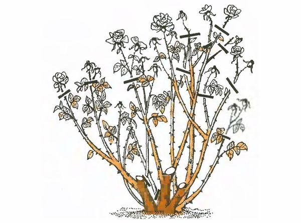 Each grower decides for himself when it is more convenient to completely prune the bush - in the autumn or in the spring. Regardless, one of the scraps should be preventive. When damaged shoots or branches that are clogging the plant are removed. Major pruning involves cutting off all branches, up to 3-4 buds. The length of the pruned branches should be more than 10 cm. During the flowering season, cut off the wilted buds along with the tops.